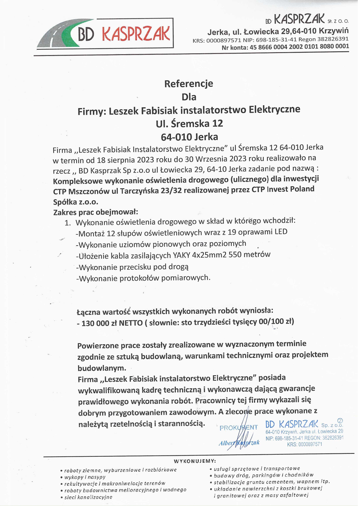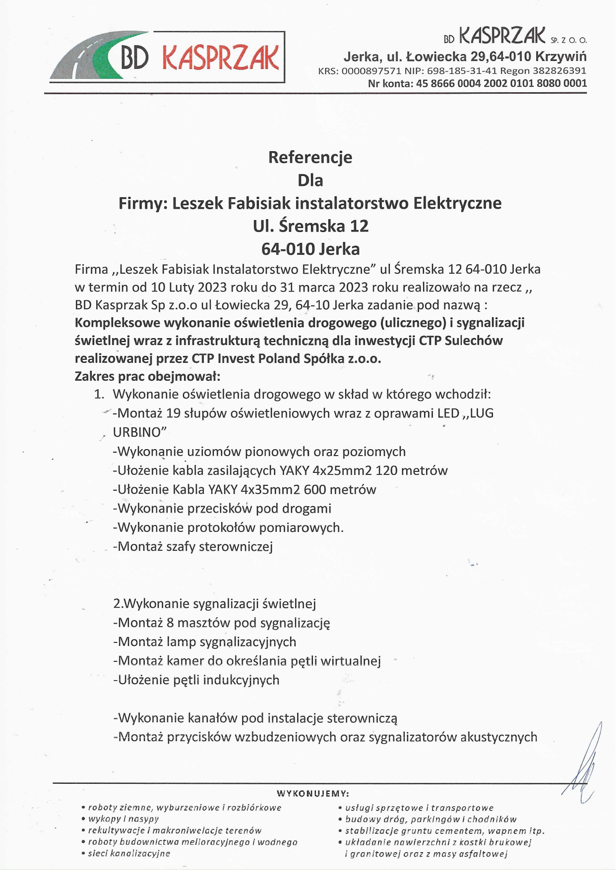 Nasze Referencje Zapoznaj się z Naszymi REFERENCJAMI referencje1 referencje2 referencje3 referencje4 referencje5 Napisz do nas fabisiakbiuro@o2.pl Zadzwoń do nas +48 692 022 765 Odwiedź nas Ulica Śremska 12, Jerka
